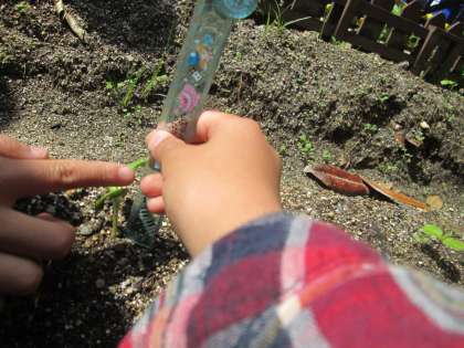 どちらも子葉が出ていたので,観察に行きました。