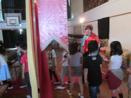 劇団の方の様々な演出に,子どもたちはすぐにお話の中に入り込んでいきました。