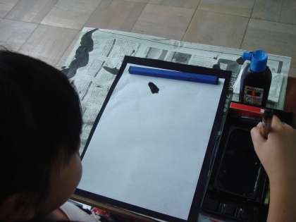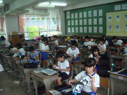 書写の授業で「美」という漢字を書きました。画と画との間に気を付けてていねいに書きました。