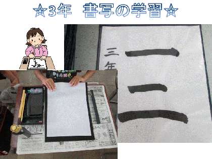3年生は,はじめての書写(毛筆)学習を進めています。