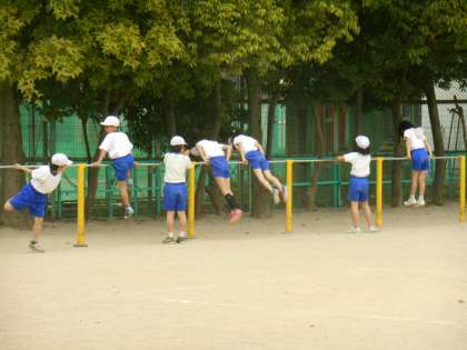 学習の狙いを確認した後,ねらい1「今できる技(上がり技・支持回転技・下り技)で連続や組み合わせに挑戦する」の活動をしました。