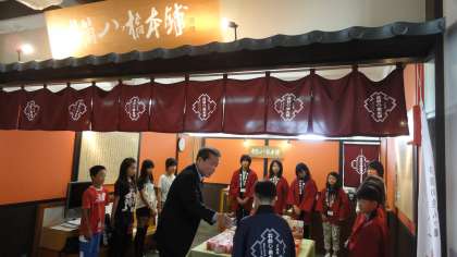 あいさつの仕方、接客の仕方など仕事の内容をチーフボランティアの方に教えていただきました。また、今日の目標を一人ひとり言いました。