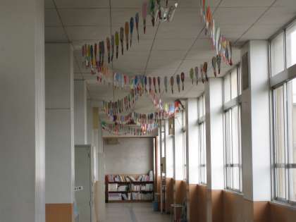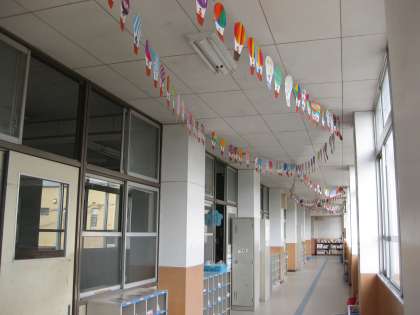 1年生を迎える会での飾りつけに”気球”の絵を描き,