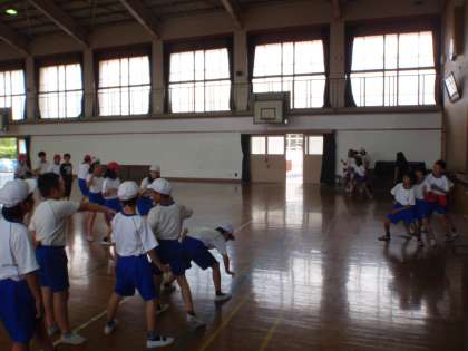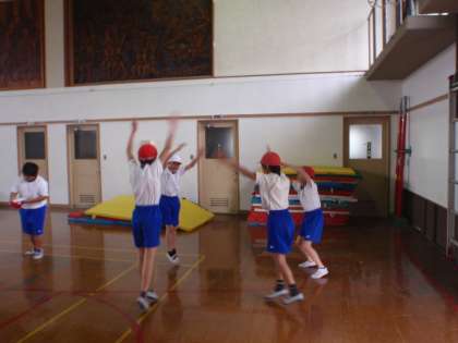 5年生の体育館での体育では「リズムダンス」に取り組んでいます。