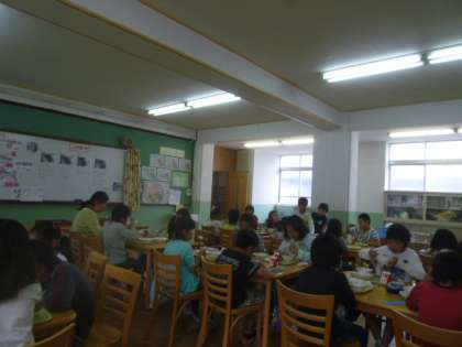 その後,ランチルームで給食を食べました。