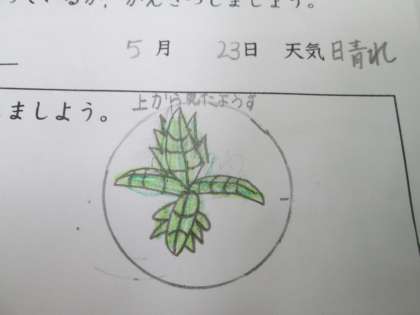 子葉と新しい葉のようすを観察しました。