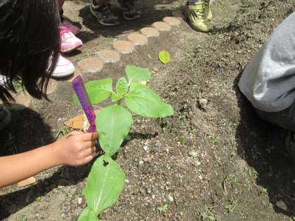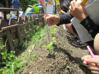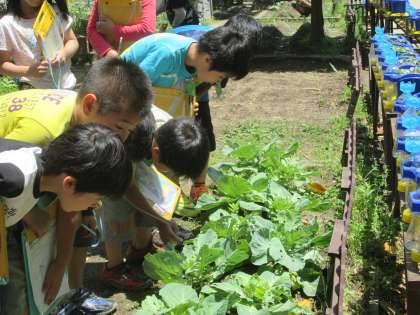教室に戻る前に,キャベツにモンシロチョウの卵がないか調べている子もいました。