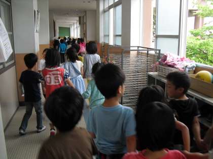 1年生の教室へ迎えに行き,羽束師小学校の色々な部屋を案内しました。