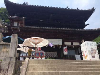 こんぴらさん参道をグループで金銭学習しました。たくさんのお店が並んでいます。