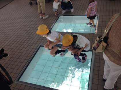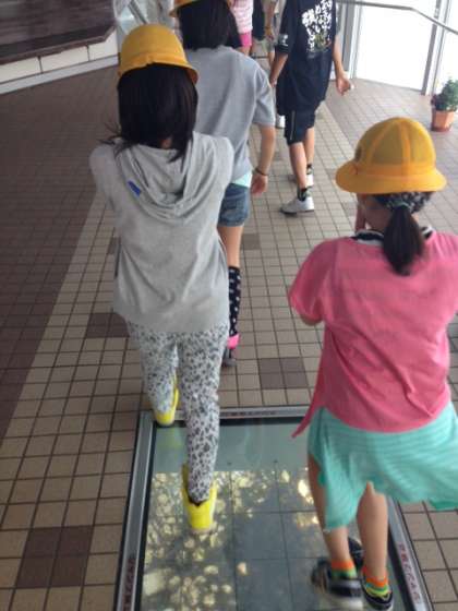 ガラスごしに下をのぞくことができました。潮風で顔やうでがベタベタしました。