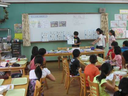学習後の給食は,いつもと雰囲気が違うこともあり,時間内に全員が食べ終わることができました。