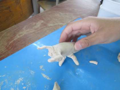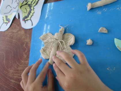 図画工作の学習では,「頭,むね,はら」を意識して,粘土でこん虫を作りました。
