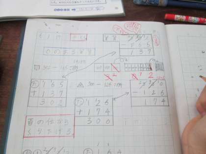 百の位からくり下げればよいことをみつけ,計算することができました。