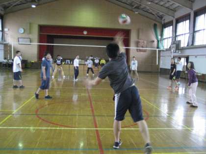 地域の方と教職員が楽しくバレーボールで交流しました。