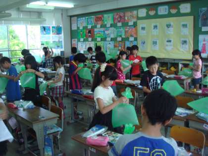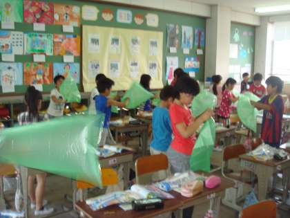 理科の学習で,袋に空気を閉じ込めて感触などを確かめました。目に見えない空気の性質をこれから調べていきます。