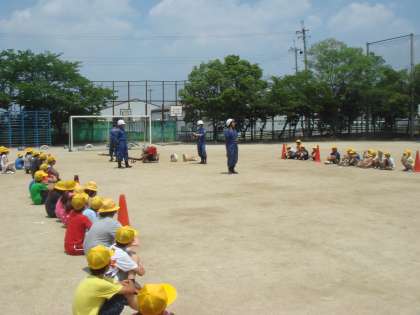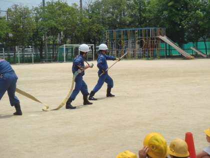 社会科の学習で消防団の方に来ていただき,話を聞いたり,訓練の様子を見たりしました。消防団についてたくさん知ることができ,団員の方の思いも聞くことができました。