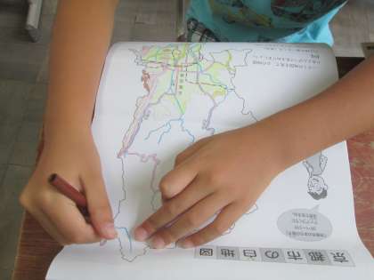 京都市の様子を調べて,地図に色を塗りました。