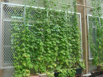 夏休みに入り暑い日が続きますが,春に植えたツルレイシは元気に成長を続けています。職員室の外側に緑のカーテンをつくりました。また,実もできています。夏休み明けにどこまで成長しているか楽しみですね。
