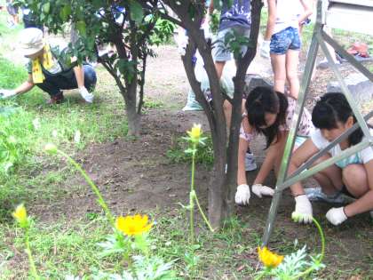 夏休みが終わり子ども達の元気な声が学校に戻ってきました。今日から授業再開です。第2校時に大掃除と草ひきが行われました。4年生は中庭の草ひきを保護者の方と一緒にしました。暑い中がんばって草を取り,中庭がきれいになりました。たくさんの保護者の方にご協力いただきありがとうございました。