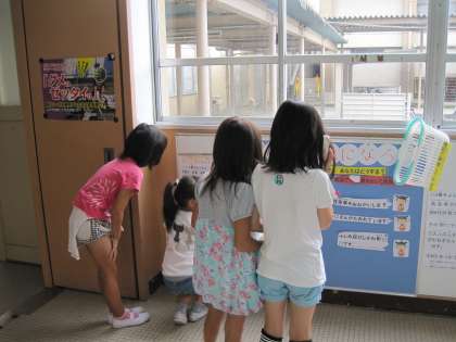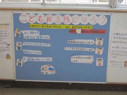 保健室前の掲示板に,119番通報の仕方を掲示しています。