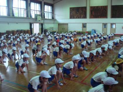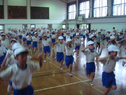 運動会に向けて学年演技の練習が始まりました。今までは各クラスで練習していましたが,今日から全員で練習していきます。一つひとつの動きをしっかりと覚えてよい演技にしていきましょう!