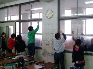 いえいえ,家庭科で学んだ『新聞紙』を使用した窓ふきです。
