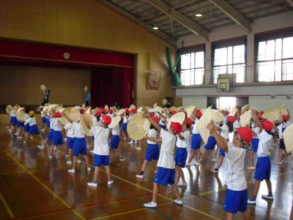 実際に1人1人傘をもち,体育館で基本の踊り方を練習しました。