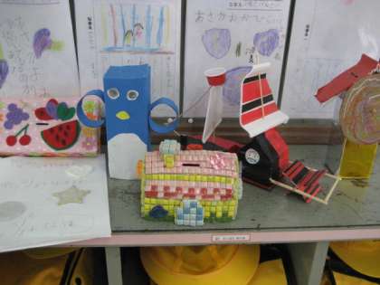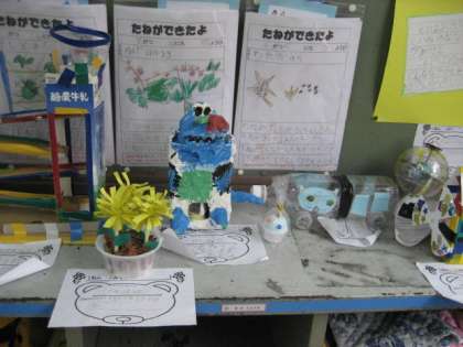 みんなががんばって作った夏休みの作品を見せてもらいました。