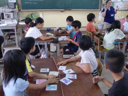 後半は色や形の言い方を学習し,カルタ大会をしました。