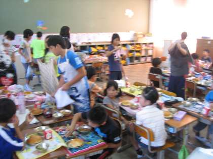 給食の用意は5・6年生が担当。