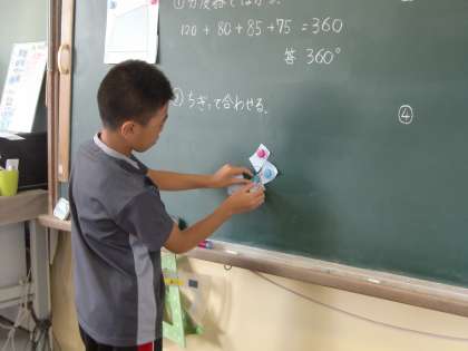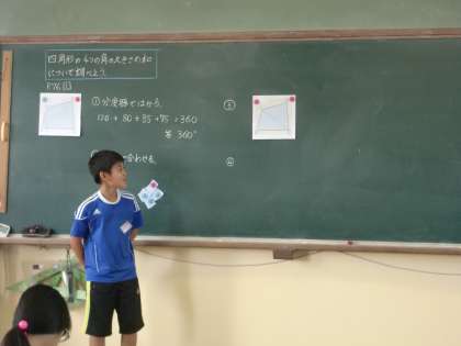 今日は四角形の4つの角の大きさの和について調べました。