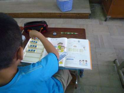 数図ブロックを使って解いてみると,答えが4であまりが1だと気づきました。