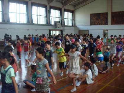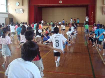 中間休みにバランス2がありました。片足で立ち何秒立っていられるかを競うゲームです。運動委員会の5,6年生が企画してくれました。4年生は楽しい時間を過ごすことができました。