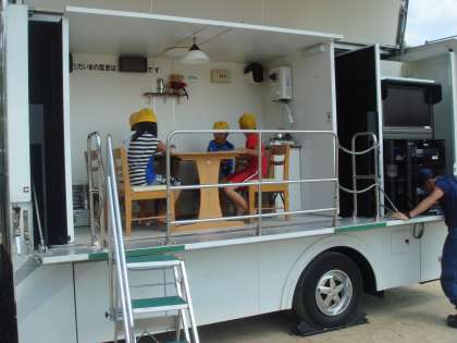 三つ目は「揺れ体験」です。震度6の揺れを体験しました。揺れ始めたらすぐに机の下にもぐりこみます。想像以上に怖かったようです。