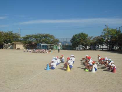 よっちょれの練習を初めて運動場で行いました。今日は並び方や移動の仕方を確認しました。それぞれの立ち位置を確認できたので,いよいよ通し練習ができそうです。