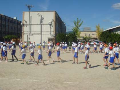 運動場で練習(4年生)