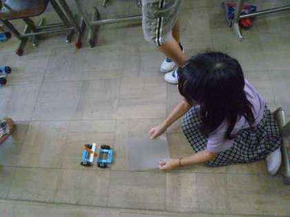 子ども達は,強い風をあてた時は遠くまで走って,弱い風をあてた時はすぐに止まると予想をしました。