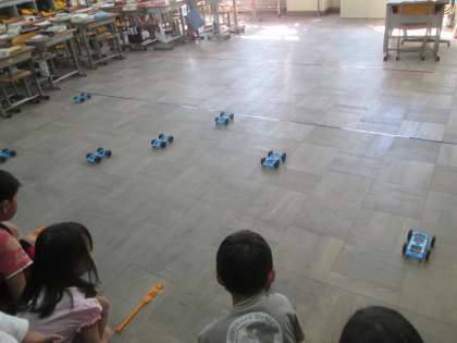 1回目の動き方を元に,強さを調整して,上手に線と線の間に停めることができました☆