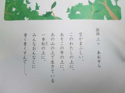 3年生 国語の教科書(下)の1ページめに掲載されている詩です。