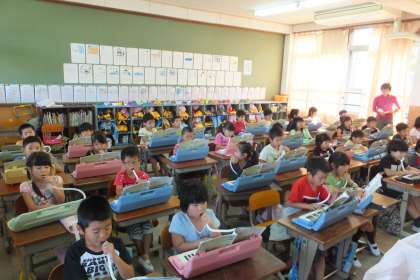 音楽科の学習では,鍵盤ハーモニカを頑張っています。ド・レ・ミ・ファ・ソまでの音を使って,曲も弾けるようになってきました。みんなの息がぴったり合うと,とても綺麗な演奏になります。
