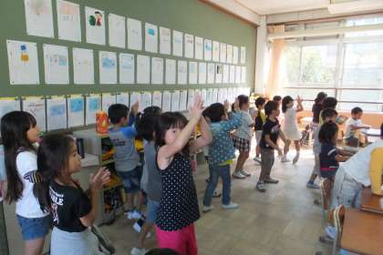 明日は第二回目の運動会全校練習があります。前回は全校ダンスを教えてもらい,今日は明日に向けてもう一度練習しました。みんな曲を口ずさみながら,踊っています!明日も頑張ります!