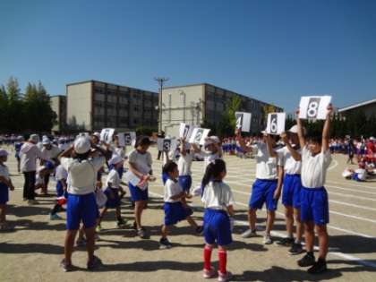 今日は,なかよし種目を実際にやってみました。まず,自分で「何の種目の,何班」ということを覚えておき,一人で行動しなければなりません。様子を見ていると・・・6年生の所まで自分で行くことができていました!よく頑張りました!