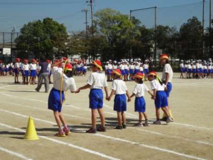 次に種目をやってみたのですが・・・これも大丈夫!6年生がしっかりと手を繋いでくれて,優しく教えてくれていました。おかげで,1年生全員しっかりと参加できていました。本番が楽しみです♪