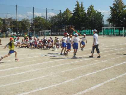 今日はリレーの練習もありました。2年生,4年生,6年生がバトンをつないでいきます。バトンの受け渡しを意識し,がんばって練習しました。