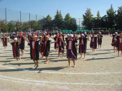 5・6校時によっちょれの練習をしました。はっぴを着て,なるこを持って練習しました。午前中には全校練習があり疲れもありましたが,本番と同じかっこうでやり,気合いはいつも以上でした。