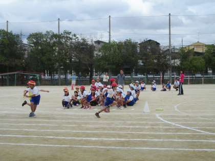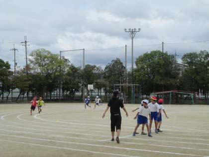 体育の時間に学習したように,しっかりリードをしてバトンパスを行えていました。