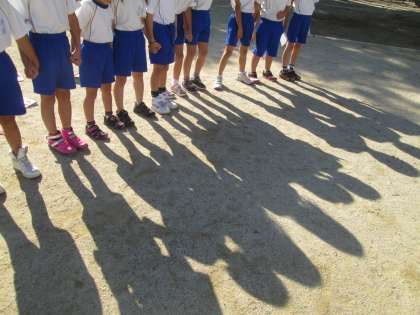 晴天だったので,運動場に出て,「かげおくり」をしました。