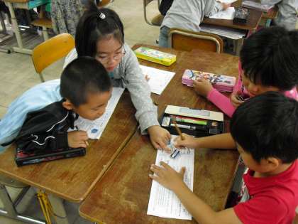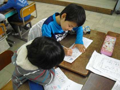今日は1年生とのワン・ツーグループで,遠足の打ち合わせをしました。