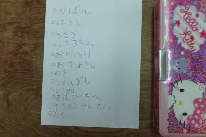 箱が完成すると,渡した人に喜んでもらえるようなプレゼントにするためには,どんな飾りがいいか,中には何をいれるか一人一人考えてメモをしました。一人一人,「○○さんはお料理が好きやから,お料理を作ろうかな!」など相手の事を思う気持ちが表れたメモになっていました。完成がとても楽しみです。