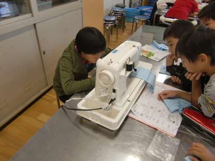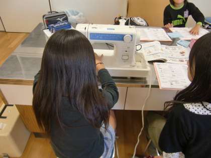 初めてミシンをさわる子どもたちは少し緊張していましたが,